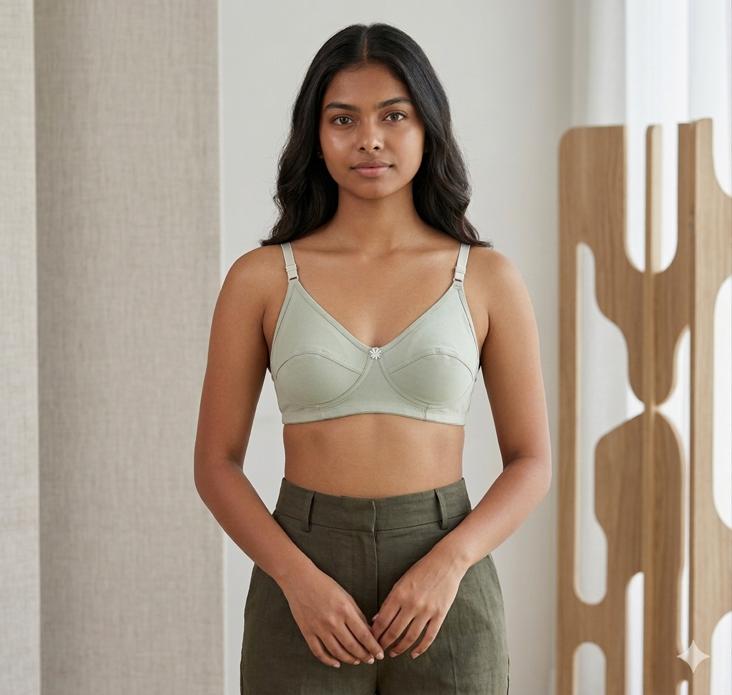 The non-padded design gives a natural shape while keeping the bra lightweight and breathable. The cotted buckle closure ensures a secure fit and easy adjustment. With its simple and comfortable design, the WaIvya bra is ideal for daily wear under casual outfits, kurtis, or workwear.
